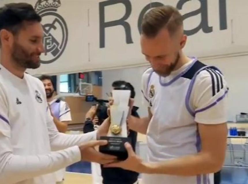 Musu i Tavaresa su iznenadili saigrači na treningu. Kapiteni tima Rudi Fernandez (Rudy) i Serhio Ljulj (Sergio Llull) uručili su nagrade Musi i Tavaresu.