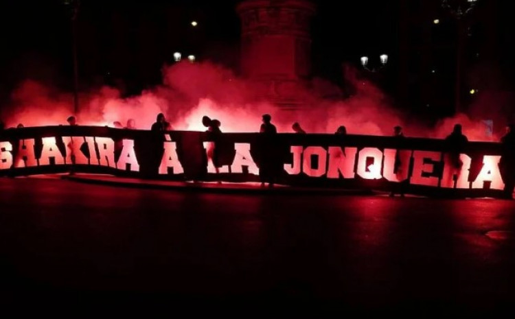 Oni se pripremaju za revanš ogled protiv katalonskog kluba, a uz bakljadu prikazali su i transparent na kojem piše "Shakira a La Jonquera", a obzirom je "La Jonquera" francusko-španska granica nekada poznata po prostituciji, jasno je šta su htjeli reći.
