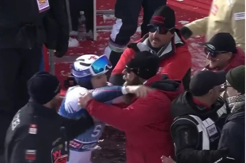 Skinuo je skije i krenuo da se fizički obračuna s njima, ali ljudi iz njegovog tima uspjeli su ga zadržati i smiriti.