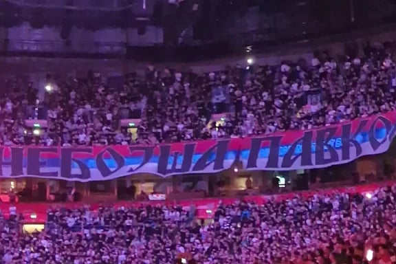 U jednom momentu su podigli transparent osuđenom ratnom zločincu Nebojši Pavkoviću, koji je inače preminuo prije nekoliko dana, a u jednom momentu pominjali su Kosovo, te se i između sebe potukli.