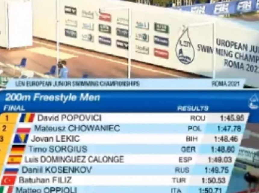 Mladi bh. plivač Jovan Lekić osvojio je bronzanu medalju na utrci 200 metara slobodno na Evropskom juniorskom prvenstvu.