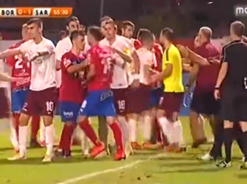 Nakon toga uslijedio je pravi šok. Djeca koja su nosila fudbalera Sarajeva su bukvalno bacila ovog igrača na zemlju nakon čega je na terenu nastao pravi haos.