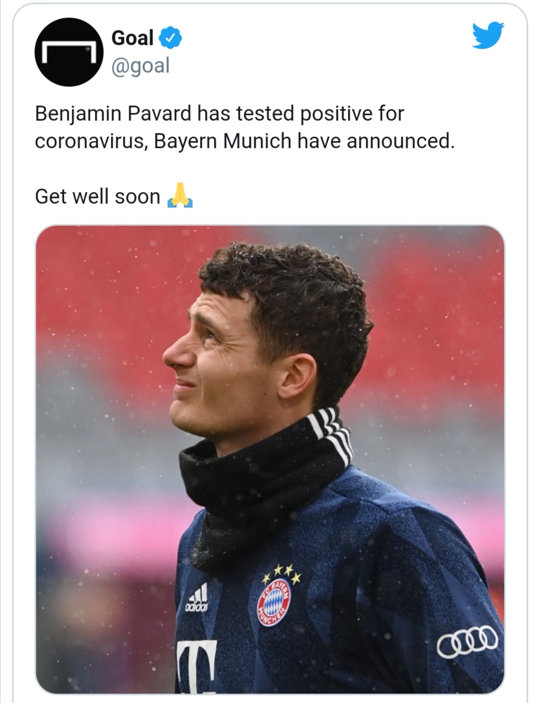 Desni bek Bayerna iz Minhena Bendžamin Pavar pozitivan je na koronavirus, saopštio je danas bavarski klub.