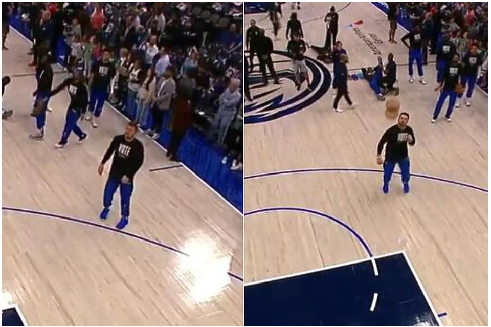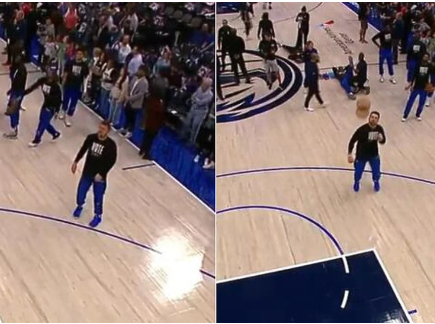 Tokom zagrijavanja, Dončić je zatražio da mu se dobaci lopta i najavio je da će je ramenom pokušat ubaciti u koš, a da ima nevjerovatnu sposobnost pogađanja, bez obzira na način na koji to pokuša, pokazao je u narednom trenutku kada je ramenom poslao loptu u koš.