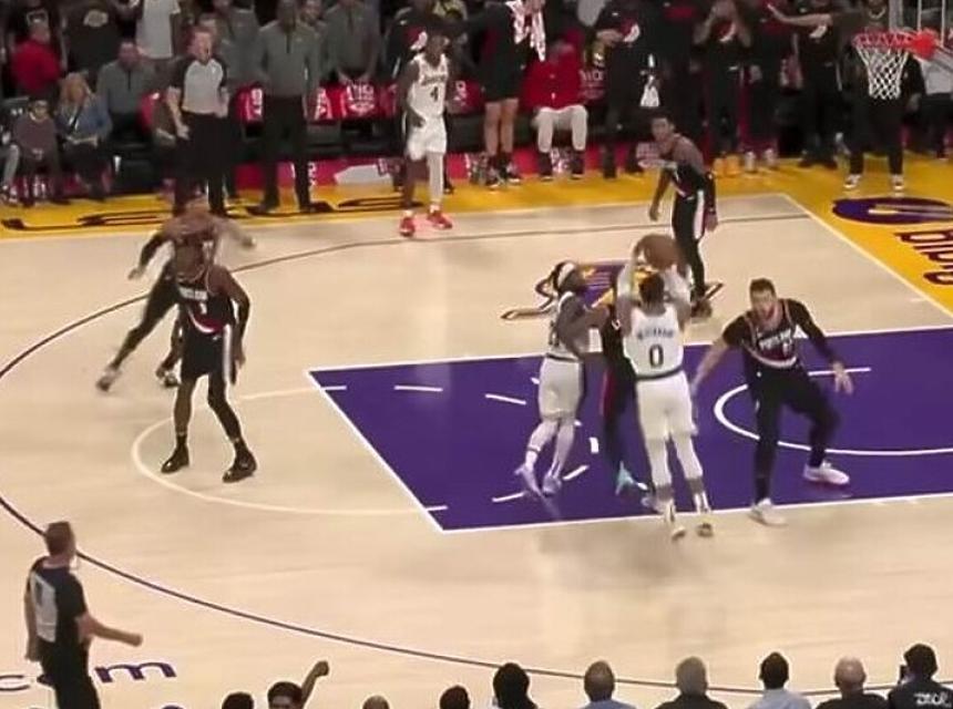 I Nurkić je gestikulacijom rukom nakon što su Blazersi osvojili loptu pokazao čuđenjem ovim potezom zvijezde Lakersa.