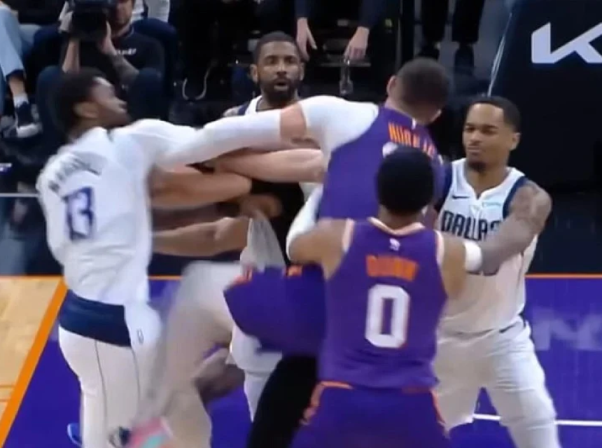 Odgovorio mu je Marshall odmah udarcem u glavu nakon čega je nastala opšta gužva na terenu. U tučnjavu je upao i krilni centar Dallasa P. J. Washington, a na kraju je Nurkić završio na podu uz psovku "odje*i" odavde".