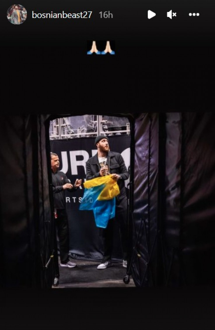 Nurkić koji je van terena zbog povrede, objavio je fotografiju na kojoj drži ukrajinsku zastavu, čemu je dodao i emoticon koji simbolizuje molitvu.