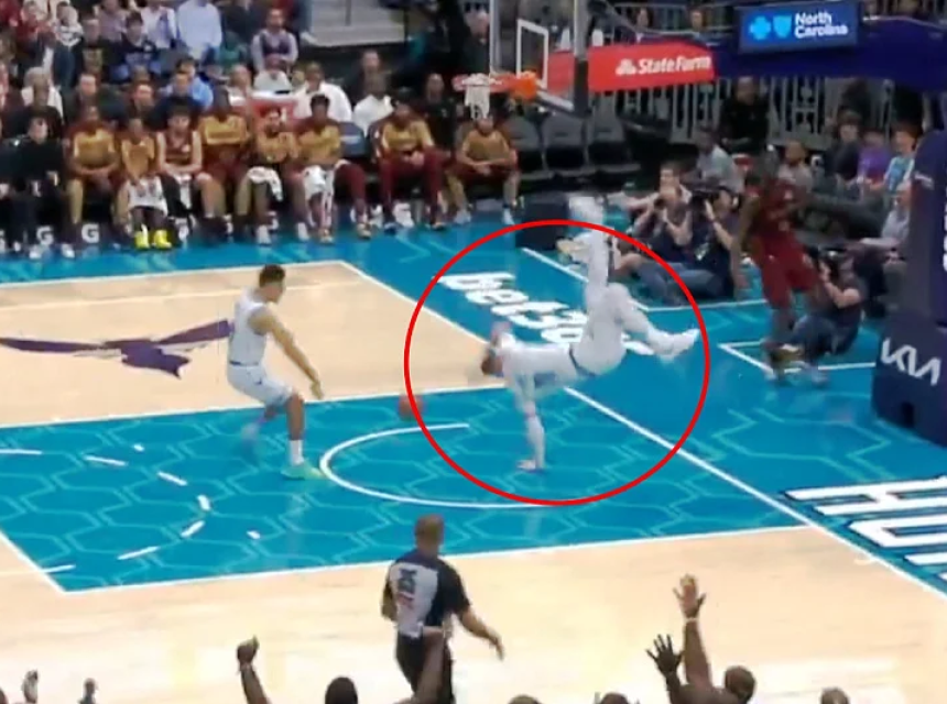 Očekivano je uslijedilo zakucavanje kojim je digao dvoranu na noge, ali onda su se svi uhvatili za glavu zbog jezivog pada našeg košarkaša na parket.