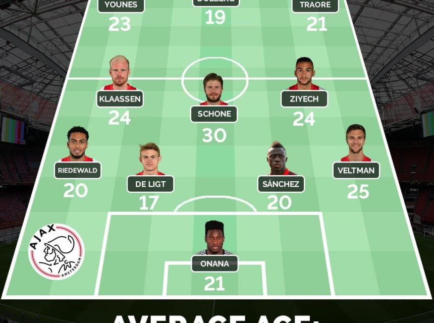 Prosjek godina prvih 11 Ajaxa večeras iznosi 22 godine i 282 dana, što je uvjerljivo najmlađa ekipa koja je ikada igrala finale ovog evropskog takmičenja.