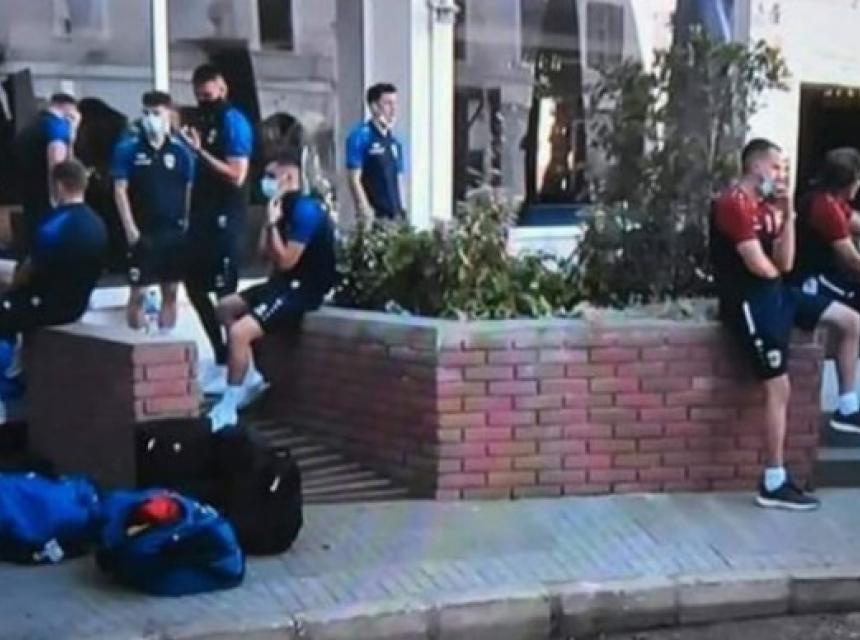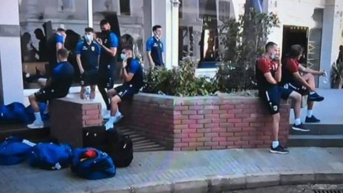 Cijela ekipa Prištine se trenutno nalazi ispred hotela i čeka prijevoz koji će ih odvesti na avion za Kosovo kako ne bi bili u kontaktu s lokalnim stanovništvom.