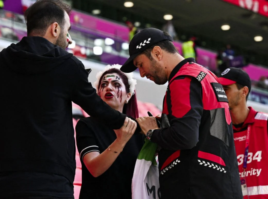 Zaštitari su danas jednu od Iranki izbacili sa stadiona. Žena je dala jasan znak solidarnosti s protestima koji su u toku.