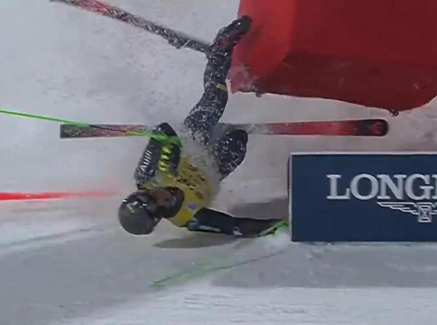 Italijan je sjajno odvozio stazu, a kada se približio ciljnoj ravnini, zapeo je za jednu kapiju, tijelo mu se zarotiralo i izgubio je ravnotežu, te je uletio u cilj tako što se zabio u ciljni pano!
