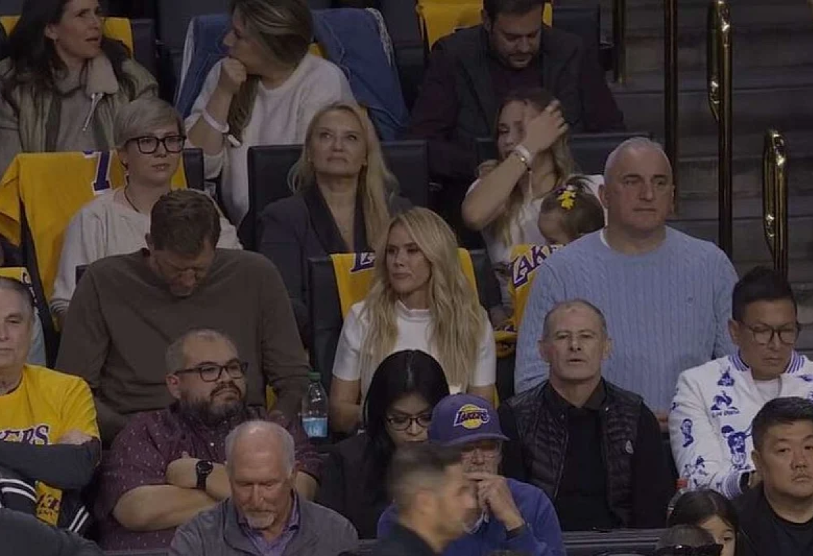 Prve minute Dončića u dresu Lakersa uživo je pratila brojna ekipa iz njegovog boksa, a među njima je bio i legendarni košarkaš Dallasa Dirk Nowitzki, veliki Dončićev prijatelj.