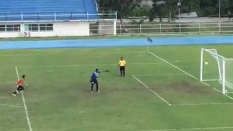 Kada pogledate snimak, bit će vam jasno i zašto: izvođač penala na nepoznatoj utakmici je snažnim udarcem zatresao prečku, na što se golman zaletio i počeo skakati radujući se. Tako slaveći istrčao je iz kadra i kaznenog prostora, dok je tužni izvođač penala buljio u travu u nevjerici.