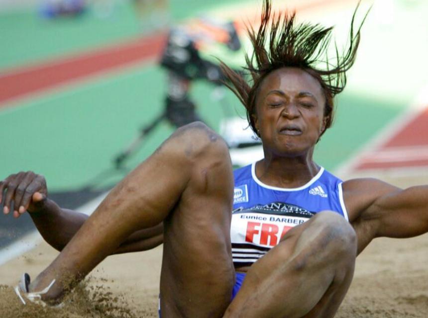 Junis Barber (Eunice), 49-godišnja atletičarka i nekadašnja svjetska prvakinja u atletskom sedmoboju, zadobila je lakše povrede nakon što ju je pijani muškarac udario u lice u vozu.
