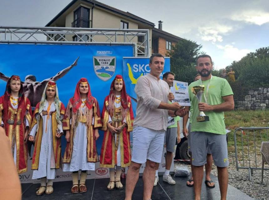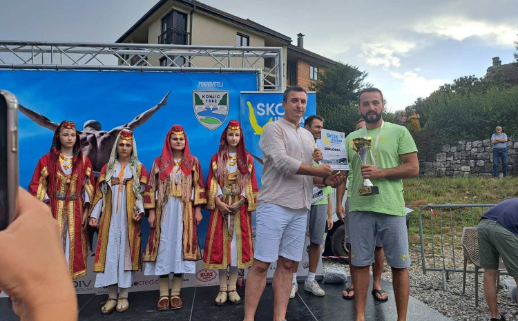 Završeno je međunarodno takmičenje u ekstremnim skokovima u vodu „Skok u Kazan“ koje je danas održano na plaži Stari Pazar u Konjicu. Prema odluci stručnog žirija ovogodišnji pobjednik je Dino Bajrić iz Sarajeva.