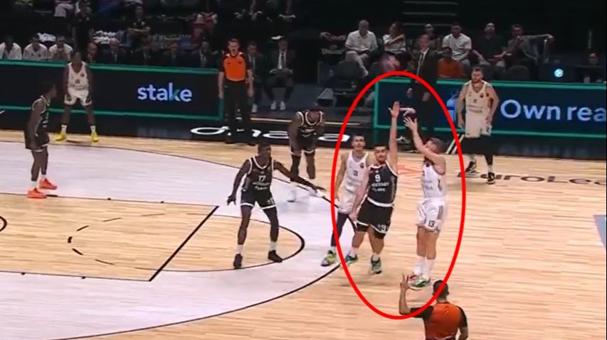 Posebno se izdvaja jedna trojka u prvom poluvremenu kada je sjajno preko ruke Marinkovića pogodio koš Partizana i podigao publiku na noge.