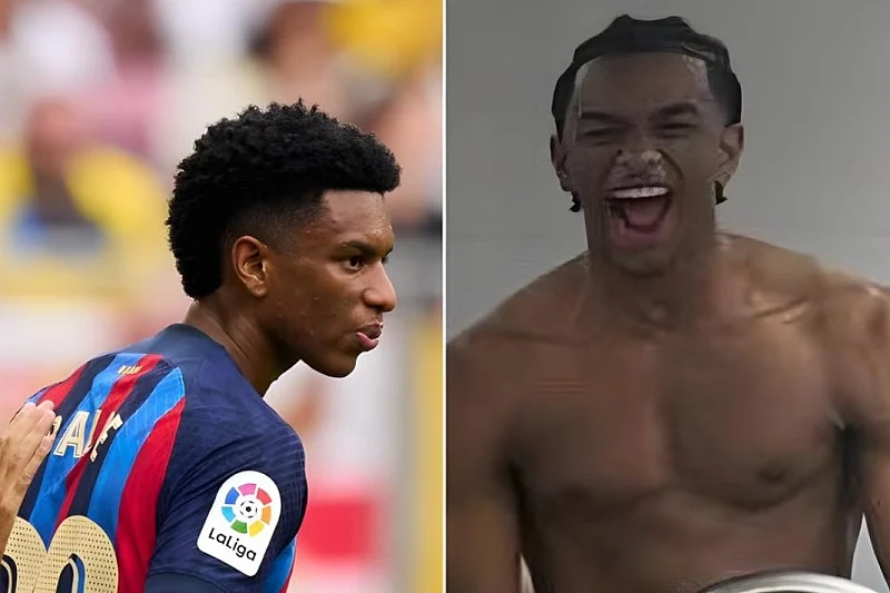 Igrači Barcelone su objavili na društvenim mrežama fotografiju sa slavlja. Više od 10 nogometaša "naguralo" se u isti bazen stadiona Metropolitano u Madridu, a posebnu pažnju privukao je Alejandro Balde.