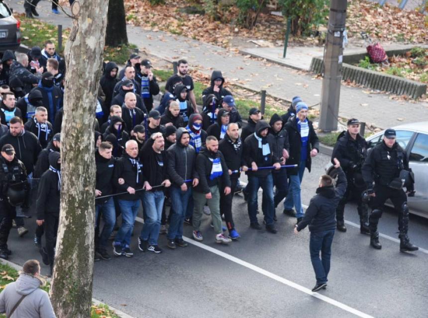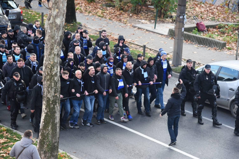 Navijači Fudbalskog kluba Željezničar "Manijaci" uoči polaska na derbi okupili su se na Mostu Suade Dilberović i Olge Sučić.