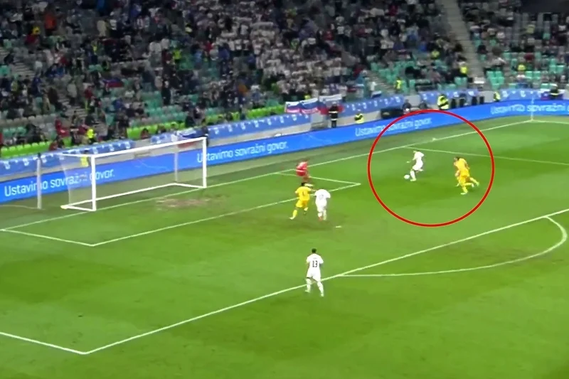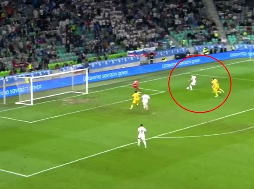 Naime, Šeško je kod prvog gola uzeo loptu na 40 metara od protivničkog golmana, potom prošao četvoricu Kazahstanaca te na kraju prebacio njihovog čuvara mreže.