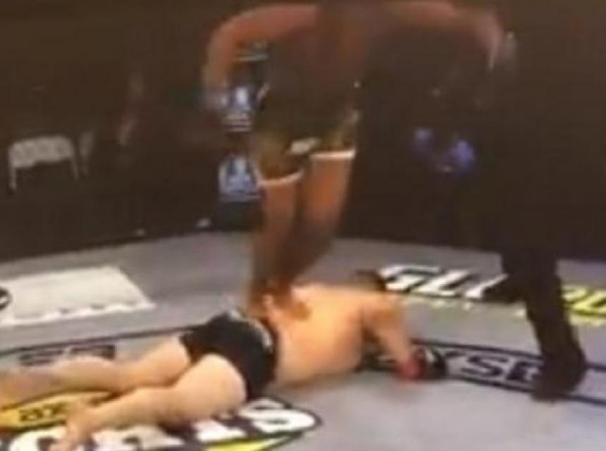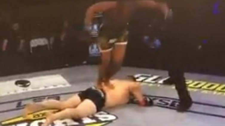 Američki borac, koji se bori kao poluteškaš, šokirao je sve kada je na nokautiranog Irvina Ajalu (Irvins Ayala) nakon završetka borbe skočio objema nogama.