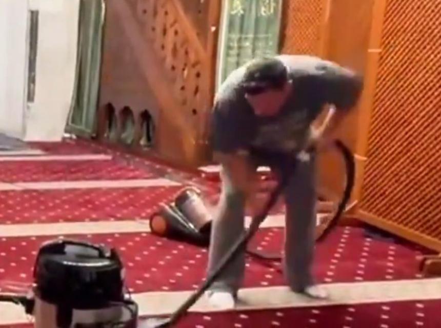 Penzionisani fudbaler Mesut Ezil snimljen je kako usisava Šemsi Ahmet-pašinu džamiju u Istanbulu.