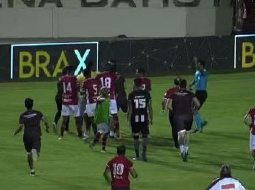 Tada je krenuo haos. Revoltirani dugom sudijskom nadoknadom i činjenicom da je Botafogo izjednačio iz trećeg uzastopnog kornera, kad su već svi očekivali kraj utakmice, igrači Sergipea okružili su glavnog sudiju, a odmah im se pridružio i Sena.