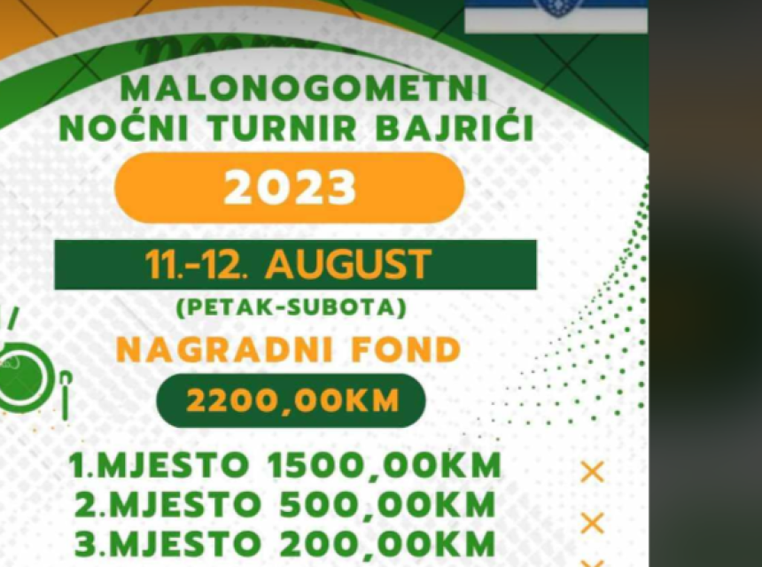 Ovim putem vas pozivamo da nam se pridružite na nadolazećem malonogometnom turniru “Bajrići 2023”! Svi zainteresirani potencijalni sponzori koji bi željeli podržati ovu organizaciju, mogu nam se obratiti putem inboxa na našoj stranici.
