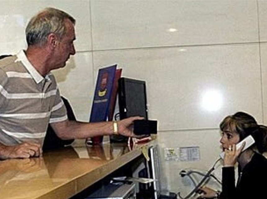 Cruyff je odmah odlučio da reaguje i na današnji dan prije 12 godina došao je u prostorije Barcelone i vratio je značku počasnog predsjednika kluba, a sve to je jedan uposlenik zabilježio fotografijom.
