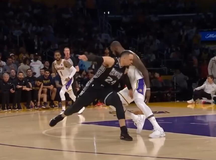 Na meču Lakersa i Memphisa viđene su i neke nesportske, ružne scene. Košarkaš Memphisa Dillon Brooks isključen je sa utakmice jer je namjerno udario Lebrona Jamesa u predjelu prepona.