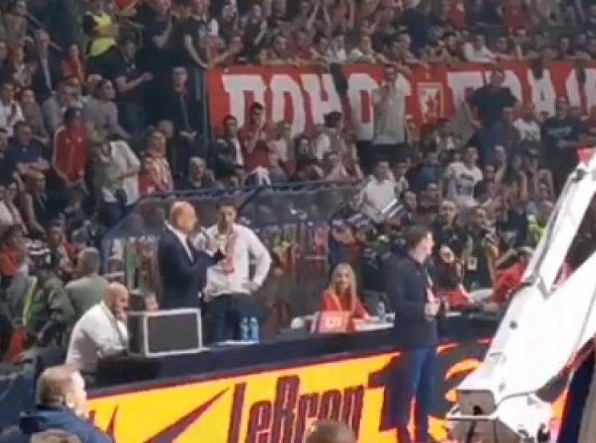 Oni su pjevali "Izađi, mala", narodnjački hit Ferida Avdića, pozivajući košarkaše Budućnosti da se vrate na parket, prenosi Avaz.ba.