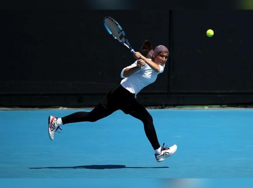 Iranka je ušla na turnir sa maramom, dugim rukavima, dugim crnim helankama i suknjom, ali nije imala šanse protiv Belgijanke Sofije Kostulas (16) i poražena je sa 2:0 u setovima (6:0, 6:2.