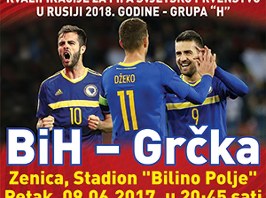 Nogometna reprezentacija BiH u petak 9. juna igra utakmicu u okviru kvalifikacija za Svjetsko prvenstvo u Rusiji 2018. godine, a protivnik će na stadionu Bilino Polje u Zenici biti reprezentacija Grčke.