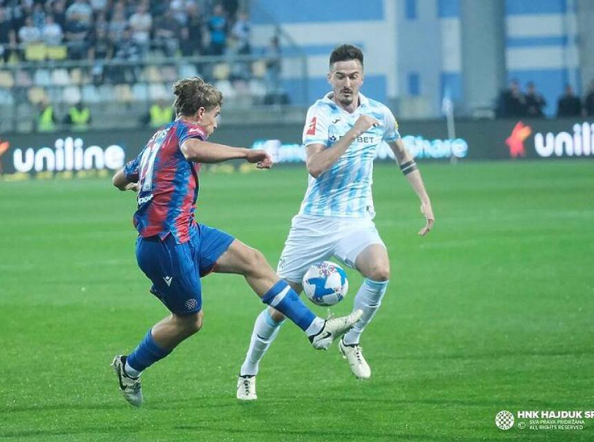 Dinamo je ranije s 4:1 slavio protiv Istre 1961, pa na tabeli vodeća Rijeka ima 65 bodova, Dinamo s utakmicom manje 60, a Hajduk 55 bodova.