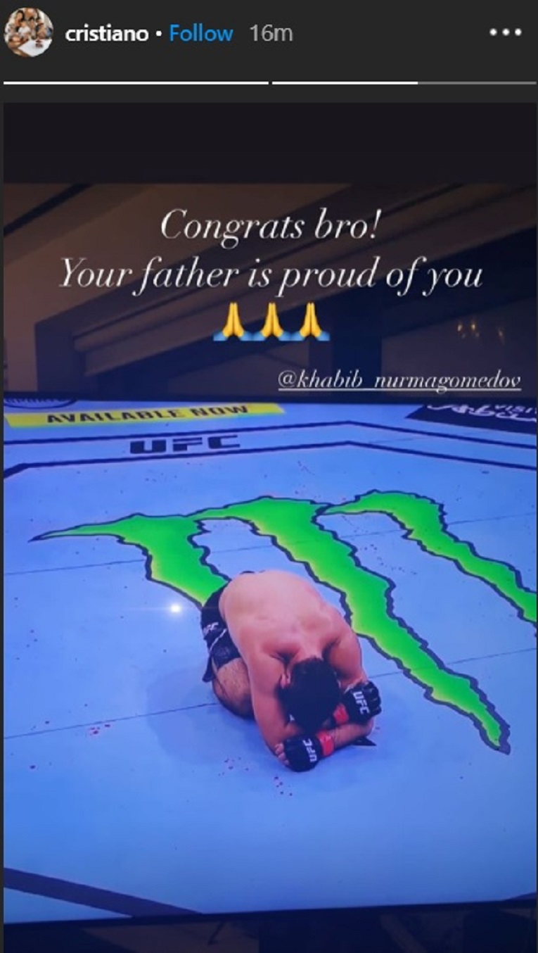 Nakon borbe oglasili su se mnogi poznati iz svijeta sporta, a među njima je i Cristiano Ronaldo koji je na svom Instagramu objavio poruku podrške za Khabiba.