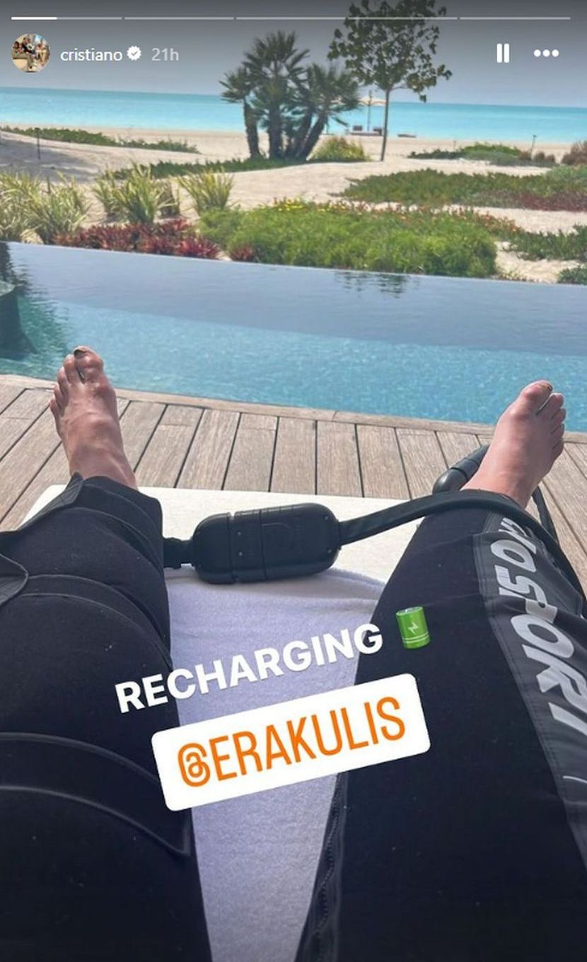Naime, Ronaldo je objavio fotografiju kako "puni baterije" i odmara na terasi dok opušta svoje mišiće uz specijalizovane uređaje na ležaljki pored bazena, uz vrhunski pogled na more.