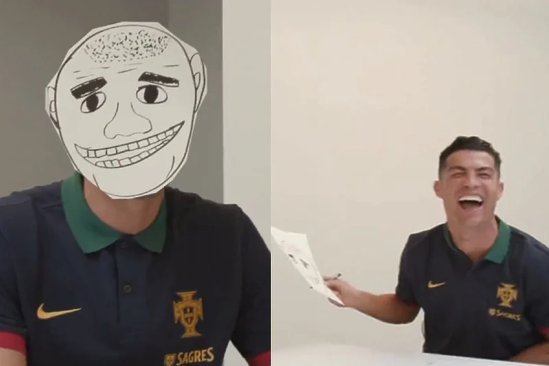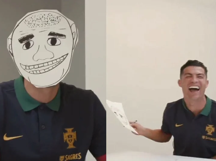 Pepe je potom pokušao da nacrta Ronaldovo lice, a našalio se tako što je namjerno nacrtao preuveličanu Adamovu jabučicu koja je karakteristična za Cristiana.