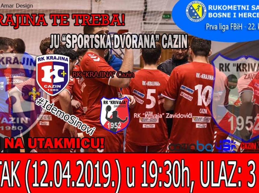 Utakmica RK Krajina - RK Krivaja igra se danas (petak) 12.04.2019 s početkom od 19:30 u sportskoj dvorani Cazin.