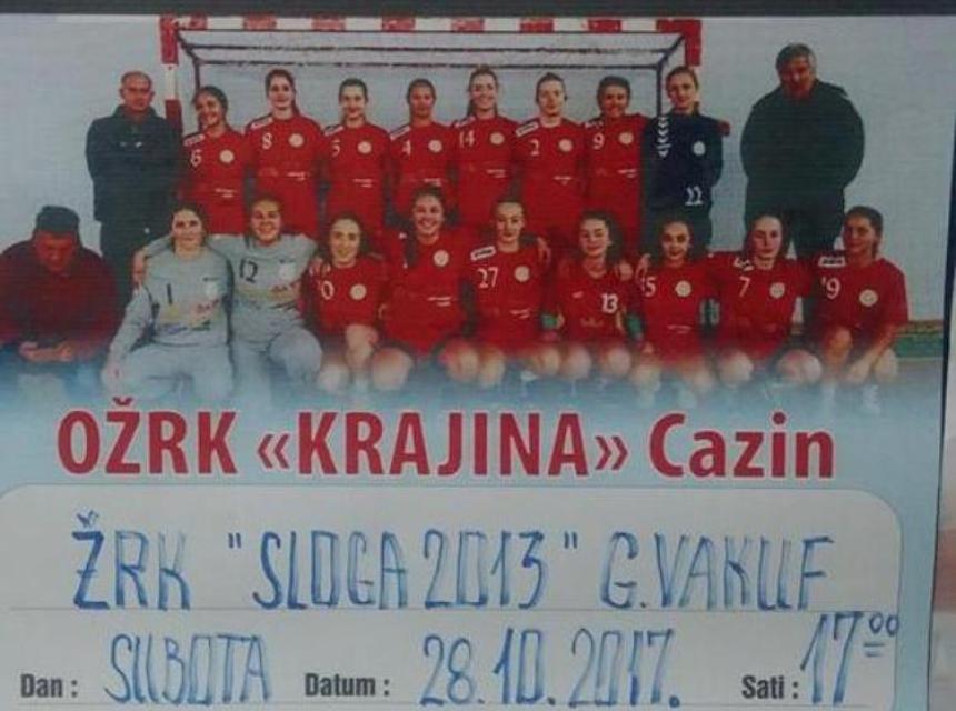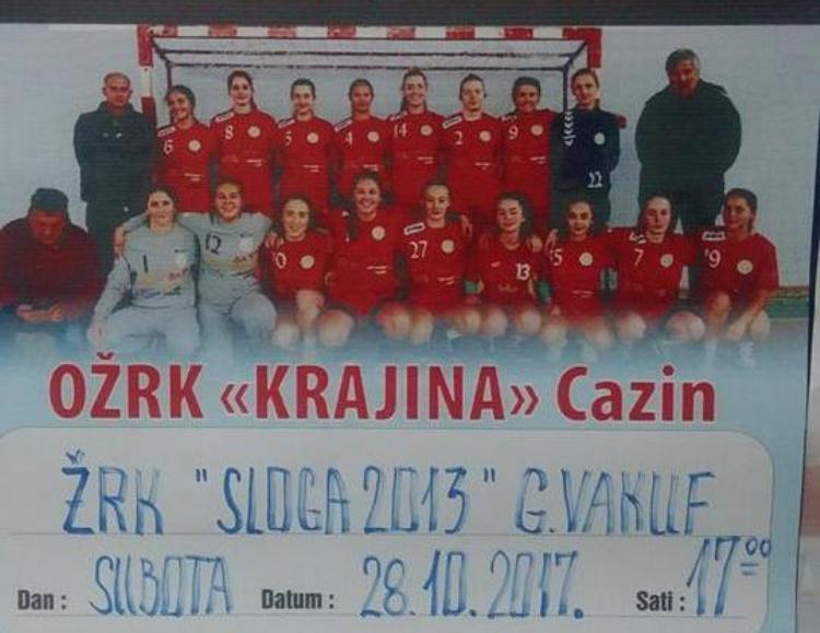 Omladinski ženski rukometni klub Krajina Cazin u subotu 28.10.2017 odigrat će utakmicu 3. kola Prve lige F BiH za žene u kojoj će ugostiti ekipu ŽRK Sloga 2013 iz Gornjeg Vakufa.