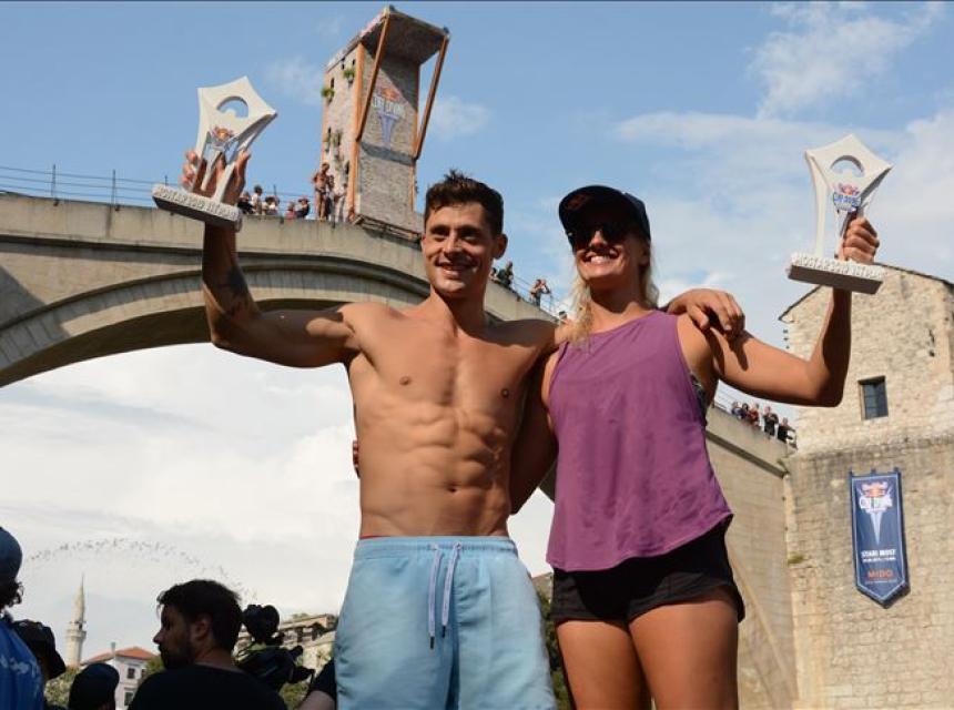 Pobjednici Red Bull Cliff Divinga u Mostaru nakon fascinantnih skokova sa Starog mosta u Neretvu danas su Constantin Popovici (Rumunija) i Rhiannan Iffland (Australija), javlja Anadolu Agency (AA).
