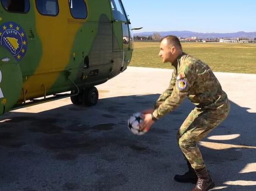 Na videu koji je objavljen na stranici rumunskog ratnog vazduhoplovstva vide se EUFOR-ovi pripadnici koji se dodaju loptom u prisustvu helikoptera, a iz zraka je poslana poruka "Hai Romania" - "Naprijed Rumunija".
