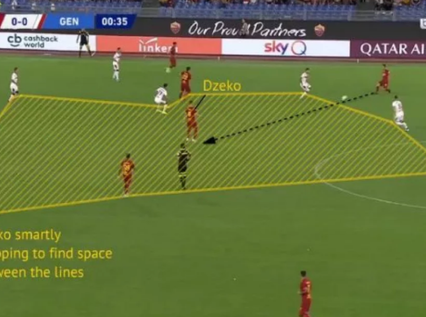 U nekoliko navrata i sam Džeko je odlično koristio prostor ispred sebe čime bi se odmah stvarila opasna situacija pred golom protivnika. To je odlično urađeno kod Džekinog gola za 2:1. Cristante je sjajno uposlio Džeku koji je potom odlično prošao dvojicu igrača Genove i sjajno pogodio.