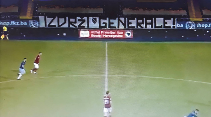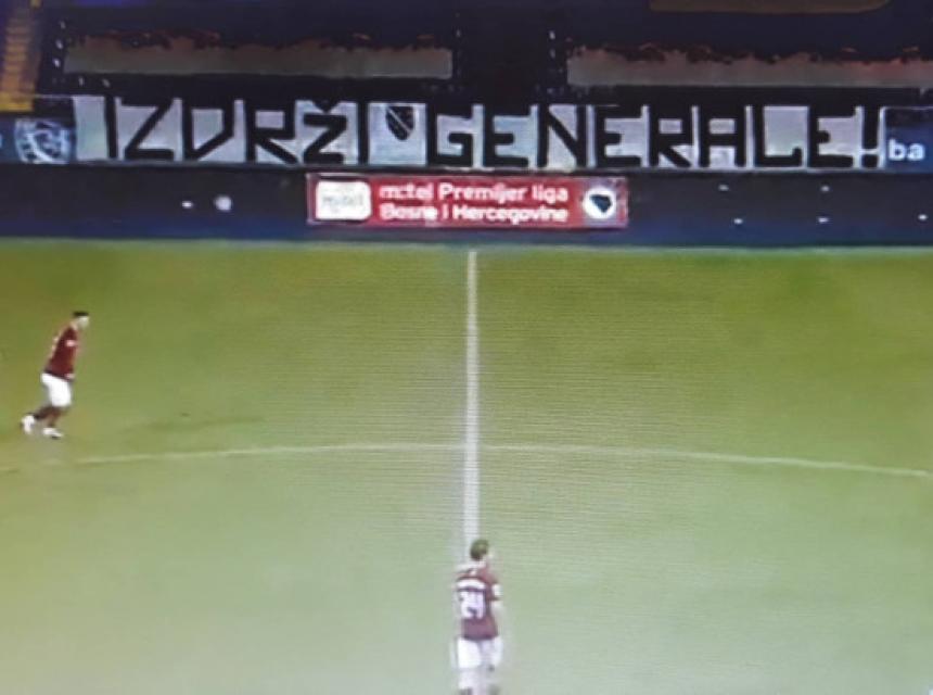 Pristalice tima s Grbavice su na utakmici Premijer lige BiH protiv Sarajeva na ogradi ostavile transparent na kojem je pisalo "Izdrži generale".