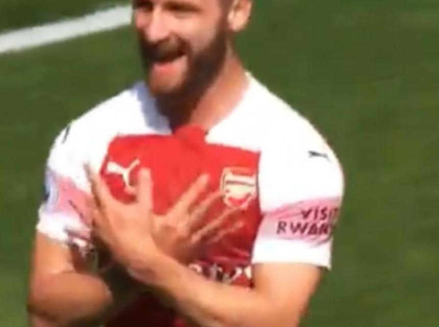 Mustafi je, prije proslave pogotka, prstom pokazao na Džaku te mu na taj način zahvalio na asistenciji.