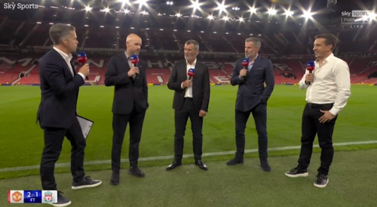 Sky Sportsov voditelj Dejvid Džons se izvinio gledateljima, dok su se Kin, Karager i Nevil nasmijali.