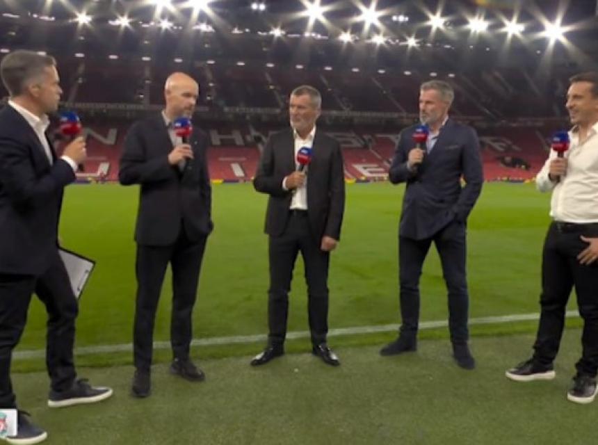 Naime, Ten Hag je u društvu voditelja Dejvida Džonsa (David Jones), te bivših fudbalera Roja Kina (Roy Keane), Džejmija Karagera (Jamie Carragher) i Gerija Nevila (Garry Neville) opsovao, komentarišući igru svog tima.