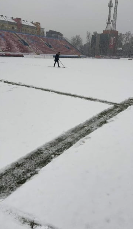 Jasno je da je pred njima itekako težak posao jer snijeg u Banjaluci i dalje pada, a već sada je jasno da će teren biti u dosta lošem stanju što će sigurno biti problem za igrače oba tima.