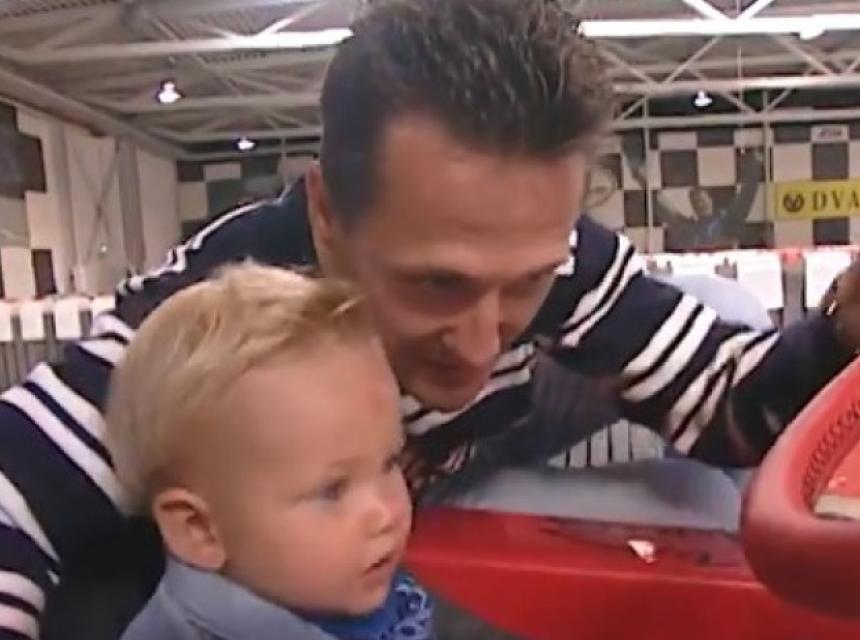 Isplivao je snimak iz 2000. godine na kojem ponosni otac Mihael nosi na ramenima plavokosog jednogodišnjeg Mika i pokazuje mu kako se upravlja karting automobilom. Objavljen je i na profili Formule 1, a izazvao je mnoštvo reakcija.