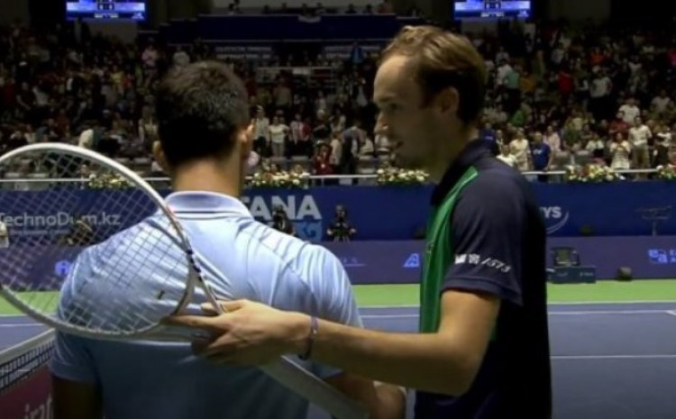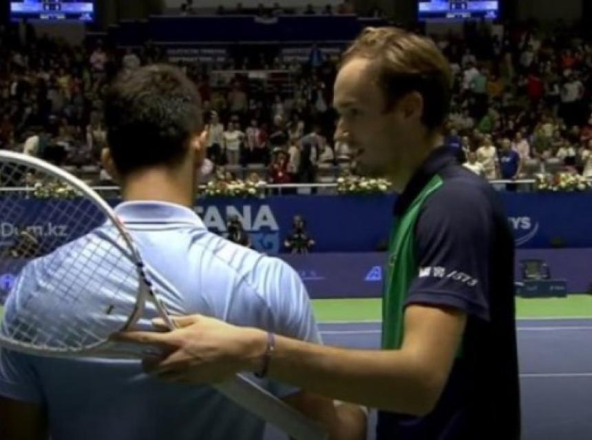 Novak Đoković izborio je finale turnira u Astani nakon što je eliminisao Danila Medvedeva. Ruski teniser je osvojio prvi set, a nakon što je izgubio drugi, viđen je jedan od šokantnijih raspleta ove sezone - Medvedev je prišao Đokoviću, pružio mu ruku i predao meč.