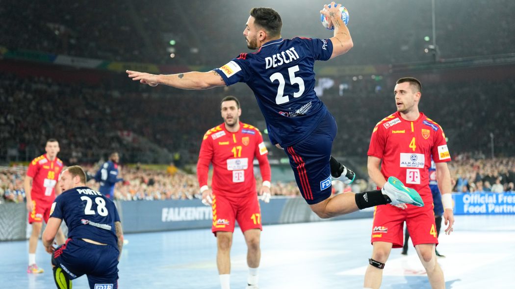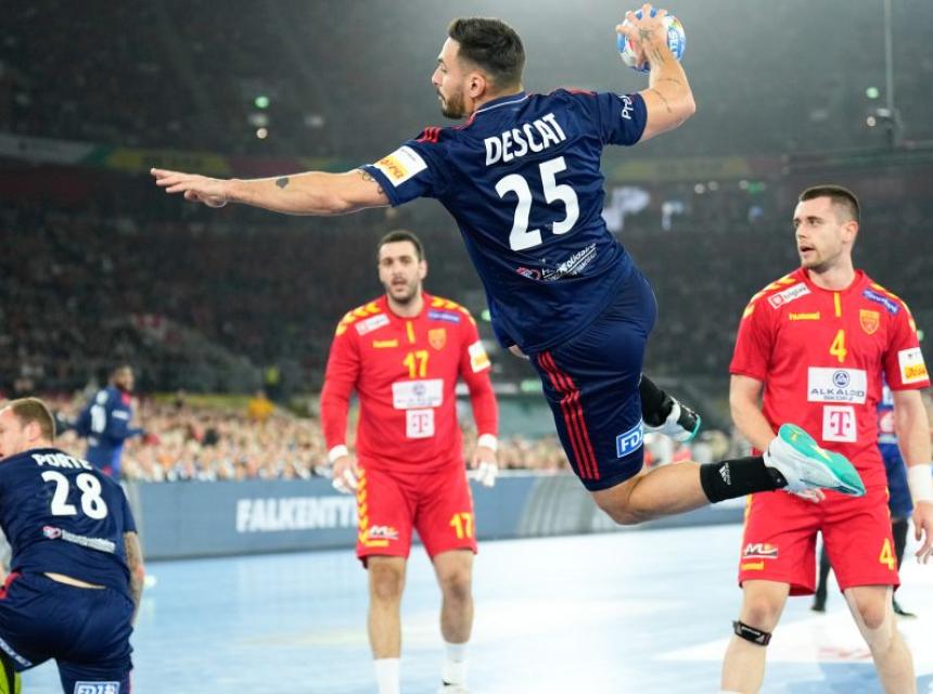 U prvom susretu ovogodišnjeg prvenstva Francuska je bez mnogo problema savladala Sjevernu Makedoniju rezultatom 39:29 (17:13) u meču odigranom u Merkur Spiel-Areni u Dizeldorfu pred 55 hiljada gledalaca.